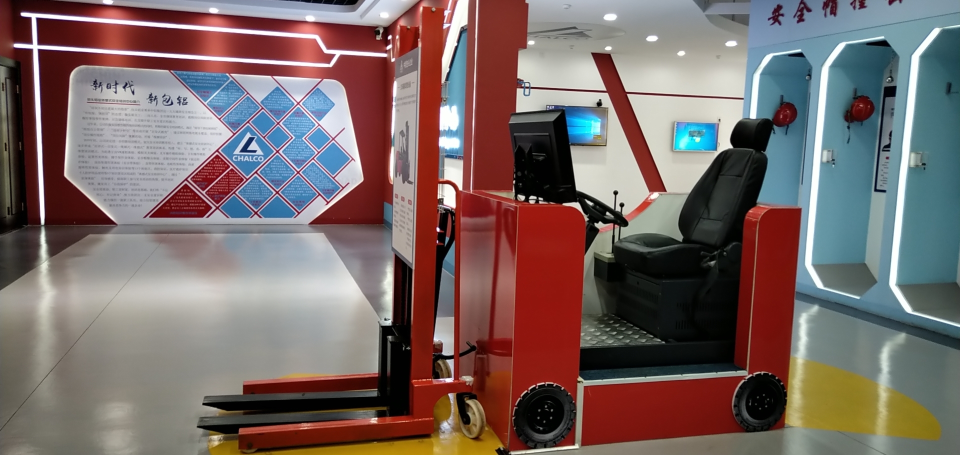 2019年初,公司决定进一步创新培训模式,加大安全培训教育投入,建立“体感式安全培训中心”,逐步形成“宣讲式——启发式——视频式——体感式”教育培训体系,构建“听、写、想、看、体”五维度培训模式。为此建立由VR虚拟体验、模拟灭火体验、叉车操作模拟体验、货车操作模拟体验、起重伤害体验、脚手架作业体验、安全帽撞击体验、受限空间作业体验(临边防护体验)、高处坠落伤害体验(安全带体验)、皮带伤害体验、齿轮伤害体验、高速旋转伤害体验、触电及用电知识体验等13个体验区,消防知识、急救知识和劳动防护用品使用等3个知识普及区组成的“体感式安全培训中心”。通过“亲身体验”、切身感受,提高职工参与安全培训的热情,提升培训效果,激发员工“自我保护”的意识。