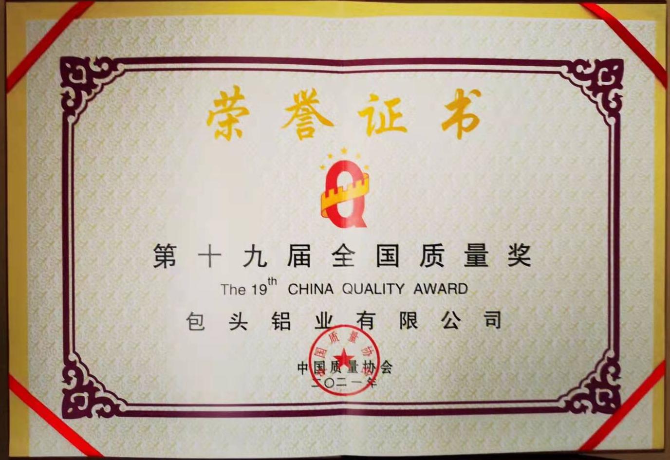 据了解,为了引导和激励各类组织追求卓越的管理质量,增强综合竞争能力,不断夯实我国经济社会高质量发展的基础,2001年,中国质量协会设立“全国质量管理奖”,2006年更名为“全国质量奖”。全国质量奖是经过党中央、国务院批准设立的奖项,在国内外质量领域具有广泛影响力。此次与包头铝业同时获得“全国质量奖”的共有15家大中型企业,其中包括伊利集团、娃哈哈集团、红豆集团等国内知名企业。