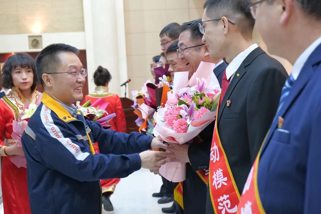 伴着现场激昂的音乐与热烈的掌声中,蒲铭为劳动模范颁发奖牌,并献上了鲜花;韩效义为总经理特别奖获奖单位代表颁奖,公司领导集体为二级模范单位、三级先进集体、先进班组、优秀班组长、优秀员工颁奖。